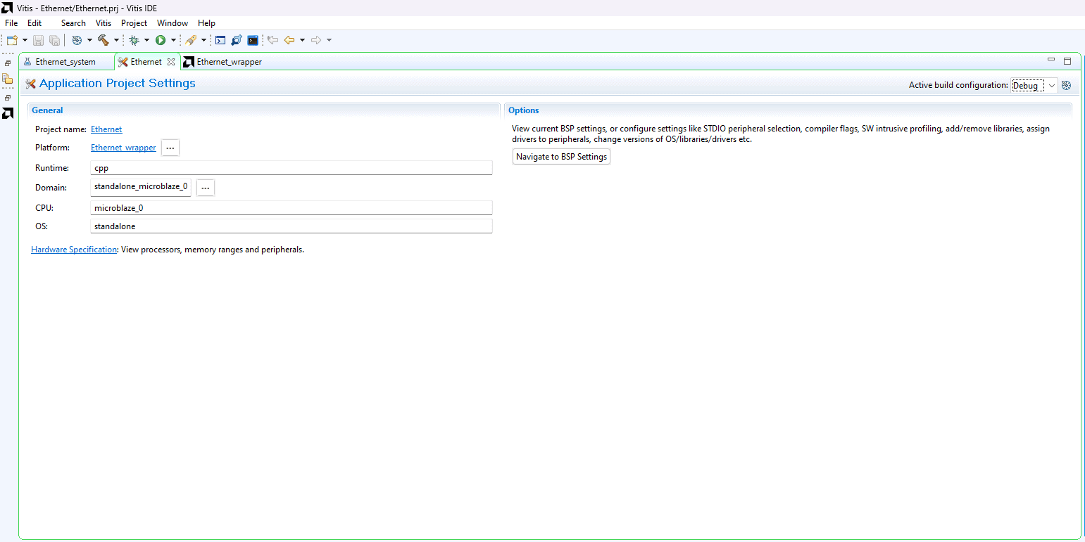 Select Navigate to BSP Settings from Application Project Settings.