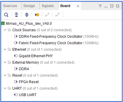 Click the Board tab. The default peripherals available for the Mimas AU Plus board will be displayed.