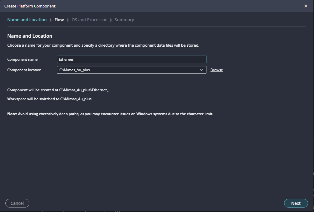In “Create Application Component” tab specify project name and location, click “Next”.