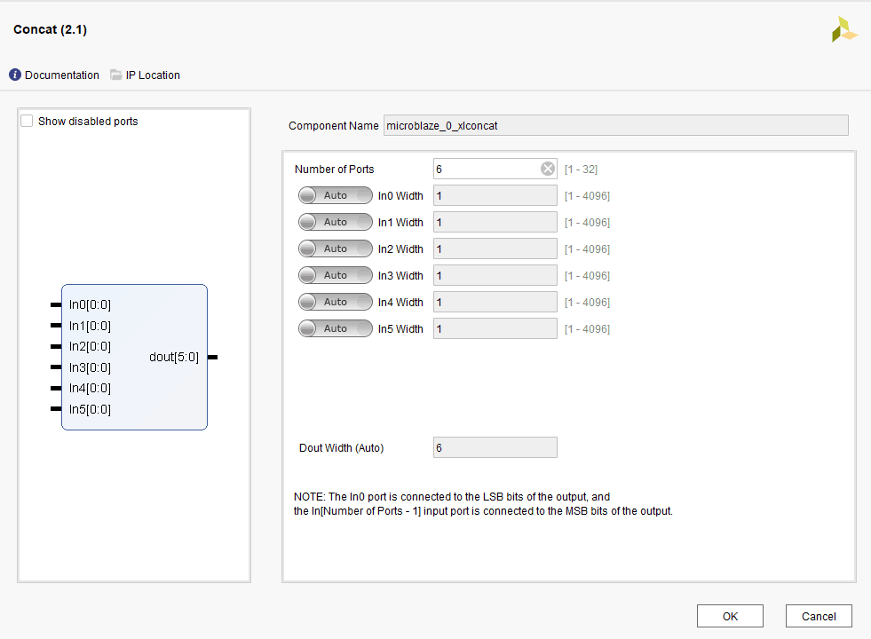 Customize the concat IP block as shown below.