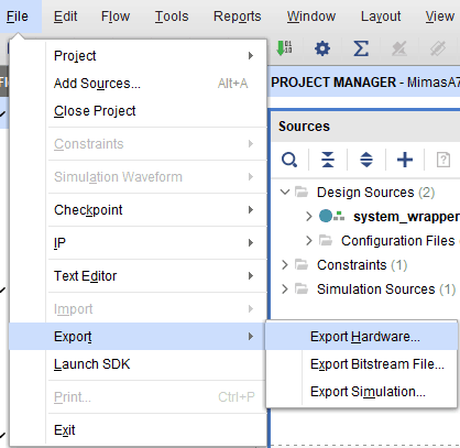 After generating the bitstream successfully, select “Export -> Export Hardware” from the File menu. Select “include bitstream” checkbox and click “OK”.