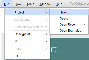 Open Vivado Design Suite, go to File->Project->New. The “New Project” window will open. Click “Next”.