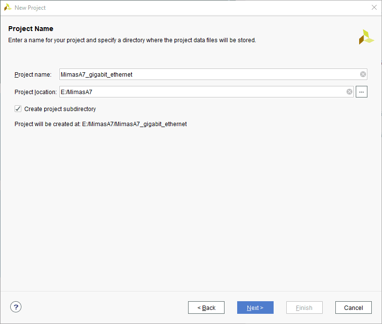 Click “Finish” to complete creating a new project. A new project will be created by Vivado with the selected settings.