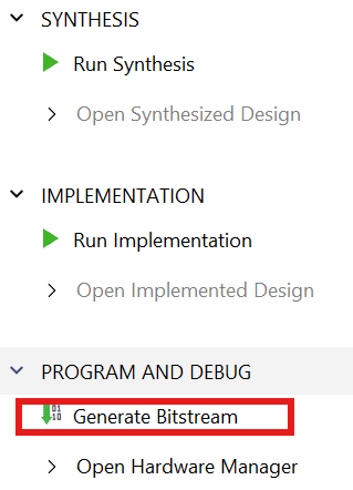 In Project Manager tab, Click on ‘Generate Bitstream’.