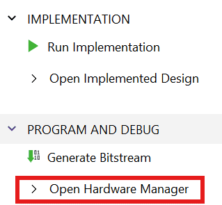 Now click ‘Open Hardware Manager’ to program the FPGA.