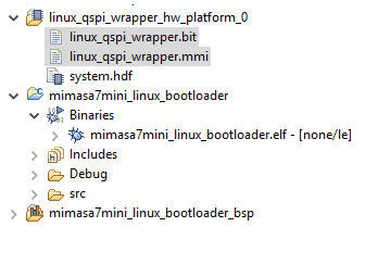 - The bootloader executable (This file can be found in the directory mimasa7mini_linux_bootloader\Debug under the SDK bootloader project folder and has .elf extension).