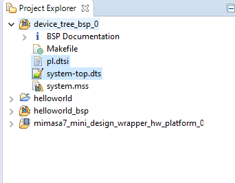Step 4: Go to File -> New select “Board Support Package”. In the dialog window, select “device_tree” under “Board Support Package OS” and press “Finish” and then “OK” in another dialog that opens. This should generate a system.dts file along with a .dtsi file. We need both of them.