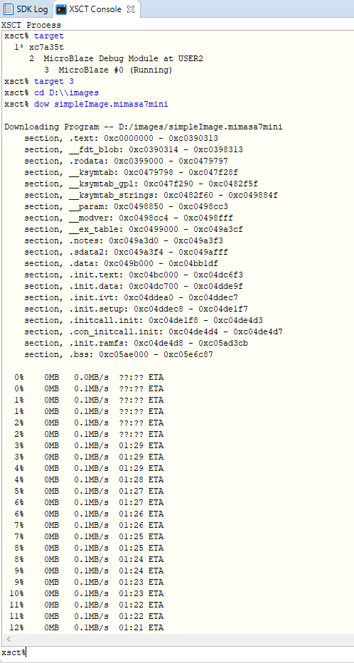 Wait for the download to complete. If the kernel image is successfully downloaded, run the below command to continue the processor: