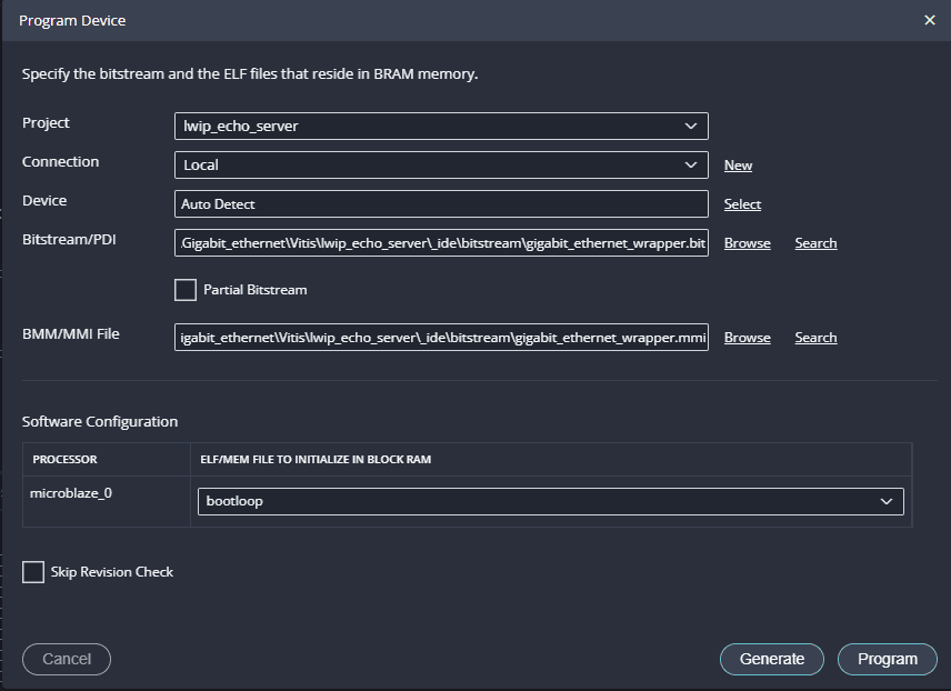 Once the “Program Device” window opens give the path for .bit and .mmi files .