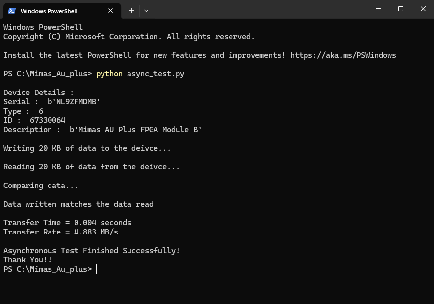 The FTDI FT2232H USB chip on-board Mimas AU-Plus provides users with a FIFO interface for data transfer between FPGA and host PC. The FT2232H chip features two channels or ports, which can be configured into various modes like UART, FIFO, JTAG etc. On Mimas AU-Plus, Channel A is used for FPGA configuration and flash programming, whereas channel B is for custom usage. This article demonstrates communication between host and the board using Asynchronous FIFO mode via boards’ respective channels of FT2232H. The Channel B of FT2232H in case of Mimas AU-Plus, when configured as FIFO, acts as a USB-FIFO bridge between host and FPGA.