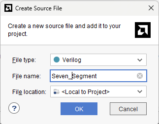 Go to “Add Sources” under the Flow Navigator -> PROJECT MANAGER window, select the “Add or create constraints” and click “Next”. Click on “Create file” and give a name for the XDC and select “File type” as “XDC”. Click “OK” and “Finish”.
