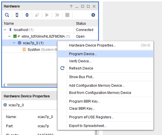 Then, Right Click on xcau7p_0(1) -> Program device.