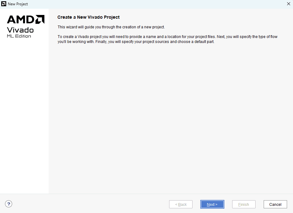 Step 1 : Launch Vivado Design Suite, go to “File->Project->New” to create a new project. The “New project” wizard will pop up. Click “Next” to continue