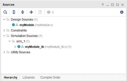 Now the test bench will be created under “Sources -> Simulation Sources”.
