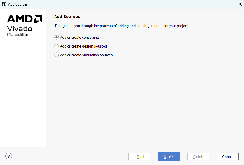 Step 1 : Go to “Add Sources” under the Flow Navigator –> PROJECT MANAGER window, select the “Add or create constraints” and click “Next”.