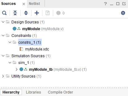 Step 3 : The XDC file is now created and is available in the Sources –> Constraints. Double-click on it to open.
