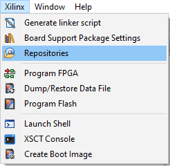 Step 2: In SDK, go to Xilinx Tools/Xilinx -> Repositories.
