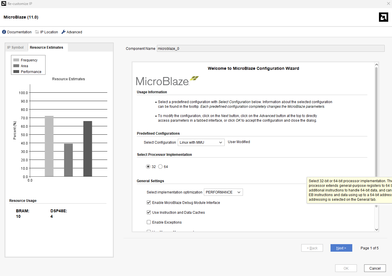 We will be modifying the design created above to run our Linux system. Open the block design created above, and double click on the Microblaze block. We need to modify this IP block to be able to run Linux on our board.