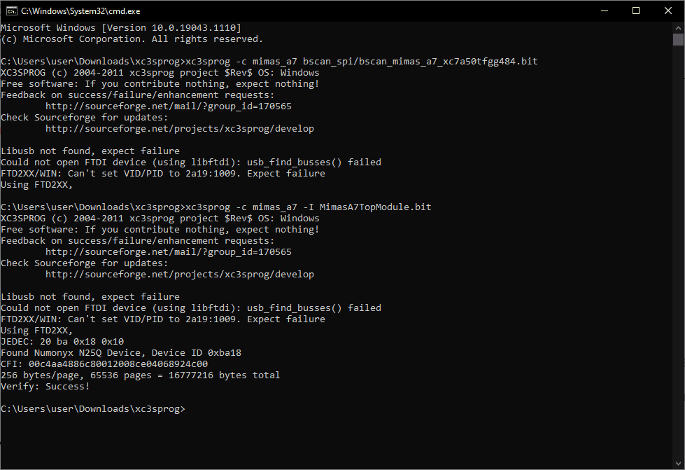 Step 2: Flash Programming Mimas A7 using xc3sprog