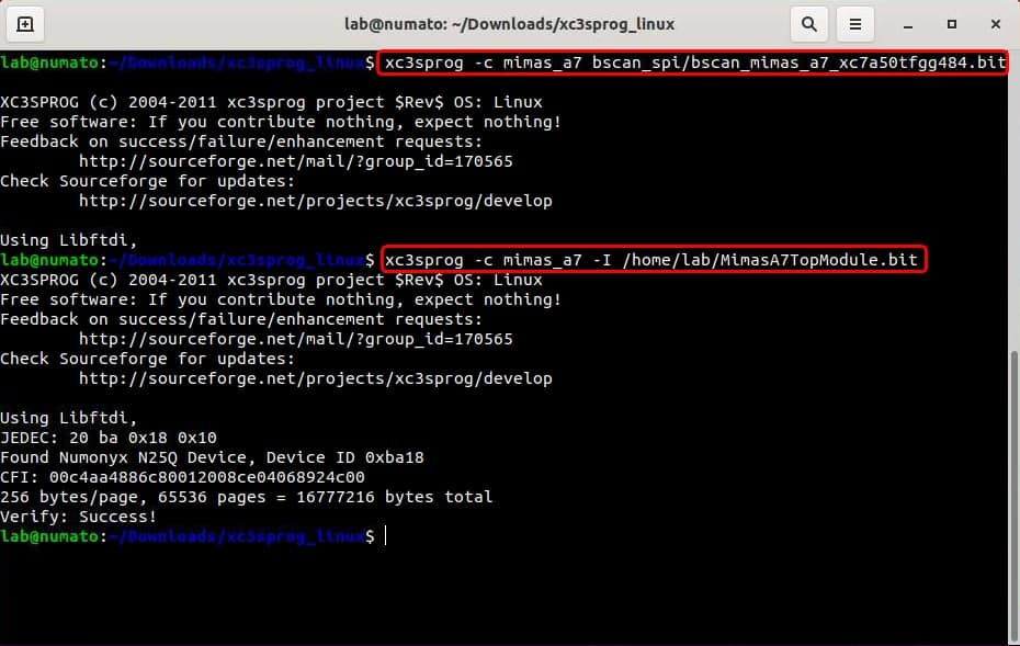 Step 2: Flash Programming Mimas A7 using xc3sprog