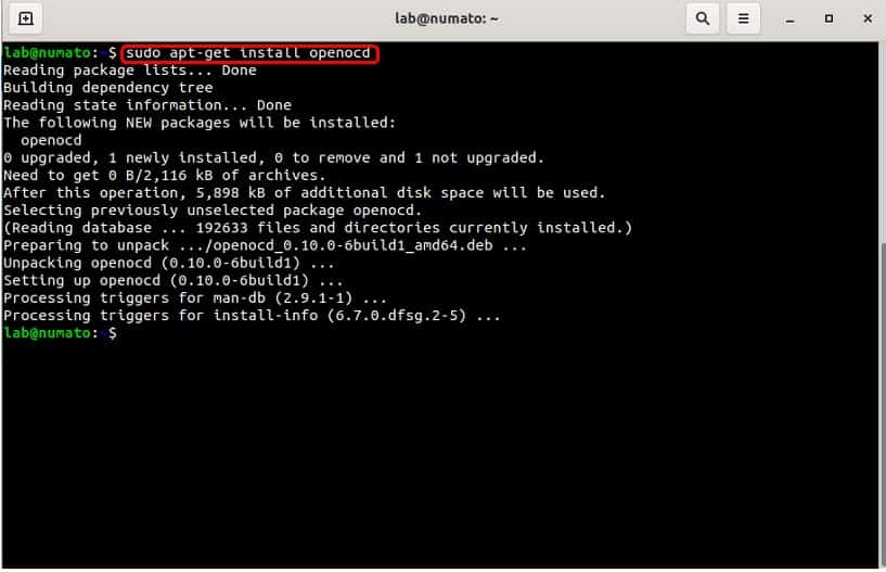 Run the following command in the terminal to download and install OpenOCD in the system: