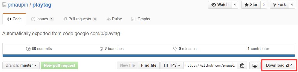 - Download ‘playtag’ source from https://github.com/pmaupin/playtag repository. [Zip URL]