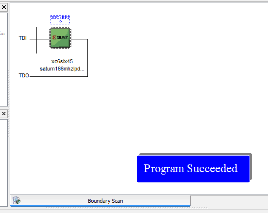 - Right click on the FPGA icon showed in iMPACT and click ‘Program’. iMPACT should now begin programming the FPGA on the Saturn Board. Once done, it should show ‘Program Succeeded’ in blue.
