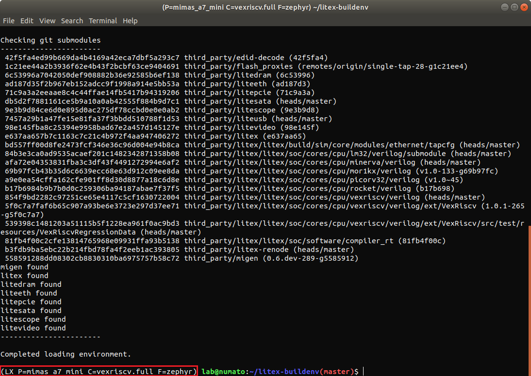 Before running any of the build steps, the first step required is to enter the litex-buildenv environment.
