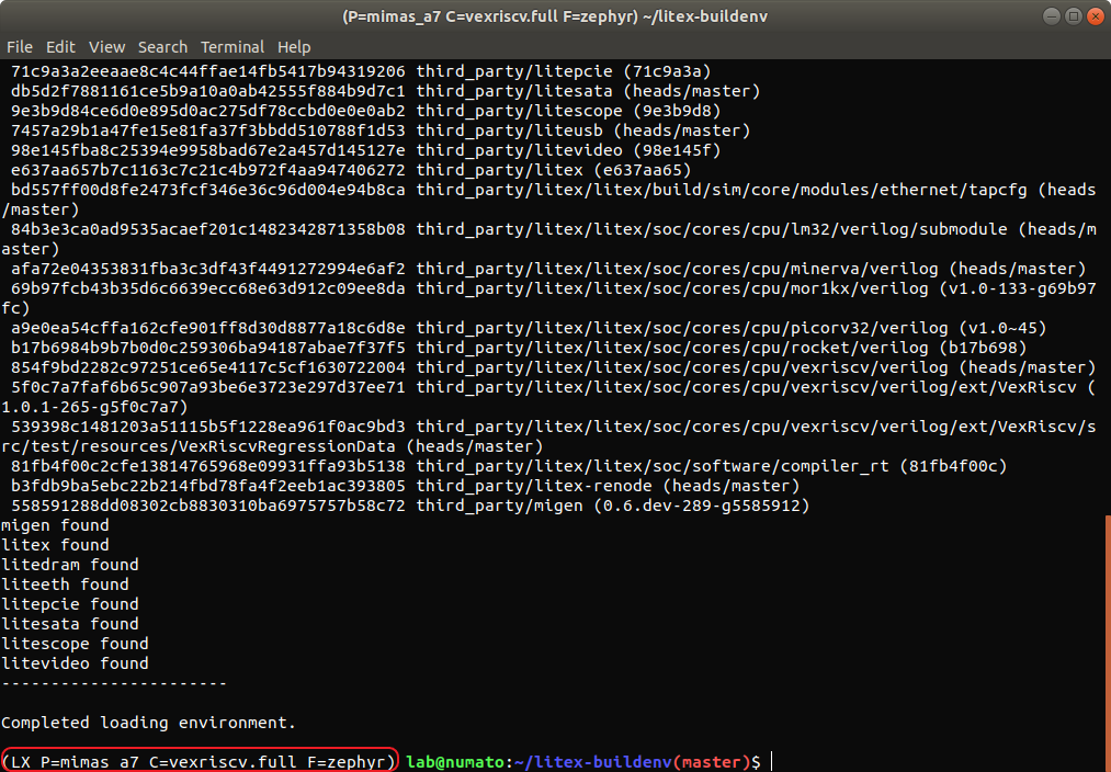 Run the following command to enter the litex-buildenv environment with the previously set variables: