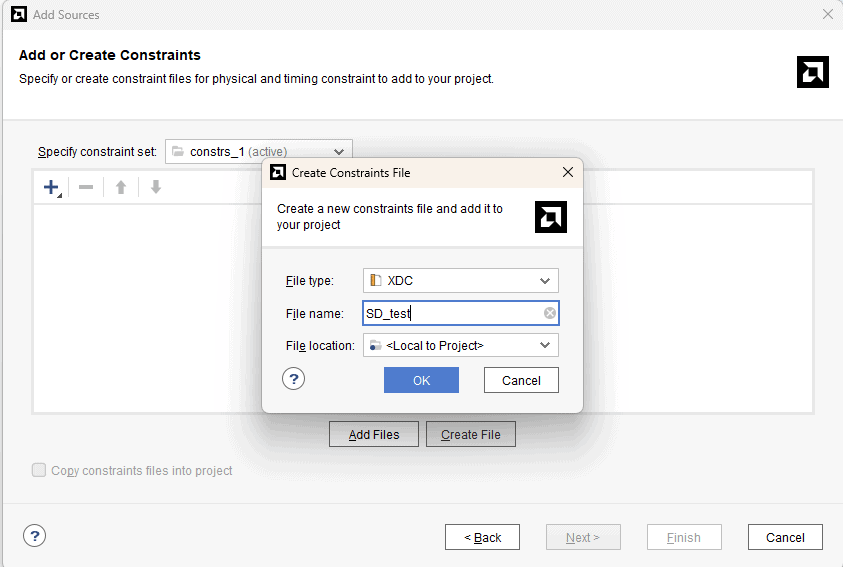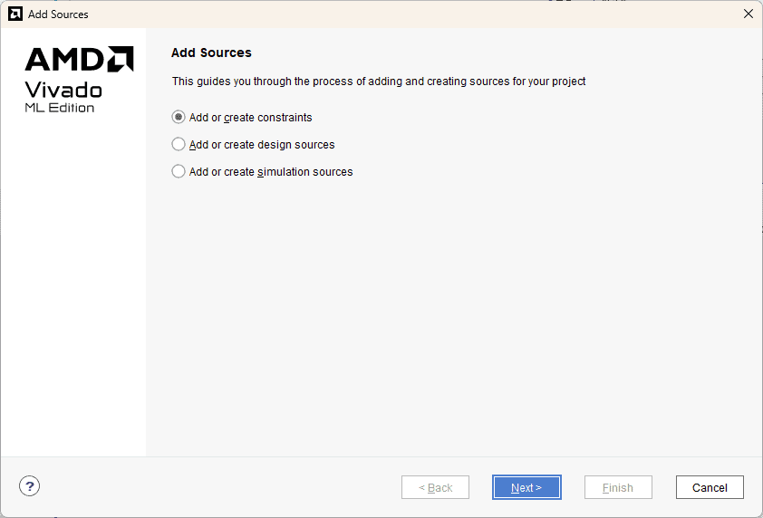 In Sources tab of Vivado, Right-Click on ‘Constraints’ and click ‘Add Sources’.