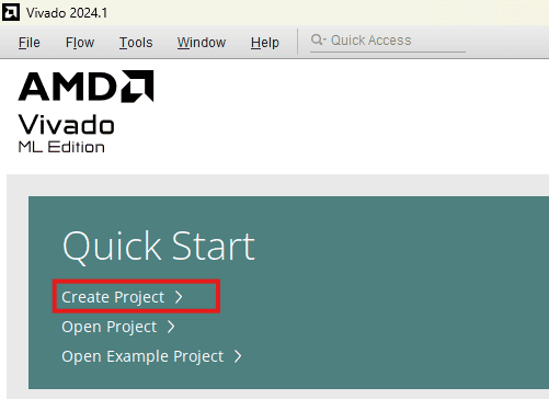 Start Vivado Design Suite, and select “Create Project” from Quick Start section.