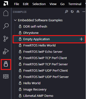 Next create the Empty Application component by selecting the “Empty Application” template from the “examples”,