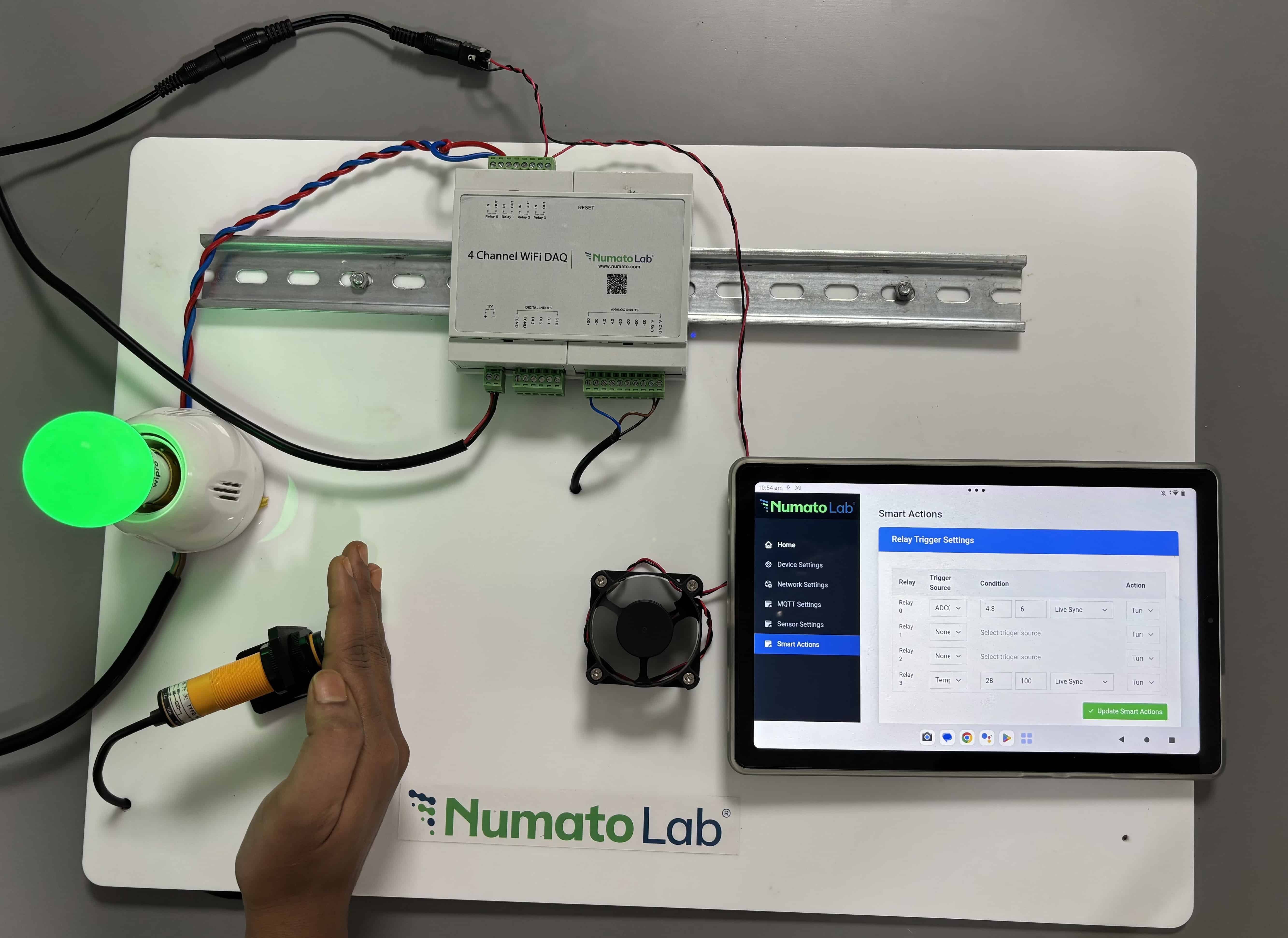 This application project demonstrates how the 4 Channel WiFi DAQ Module offers a powerful solution to automate temperature and proximity-based monitoring without the need for any external controller, PLC, or gateway. With its built-in sensors, relay outputs, analog and digital inputs the module acts as a complete edge automation solution that is compact, affordable, and incredibly easy to use.