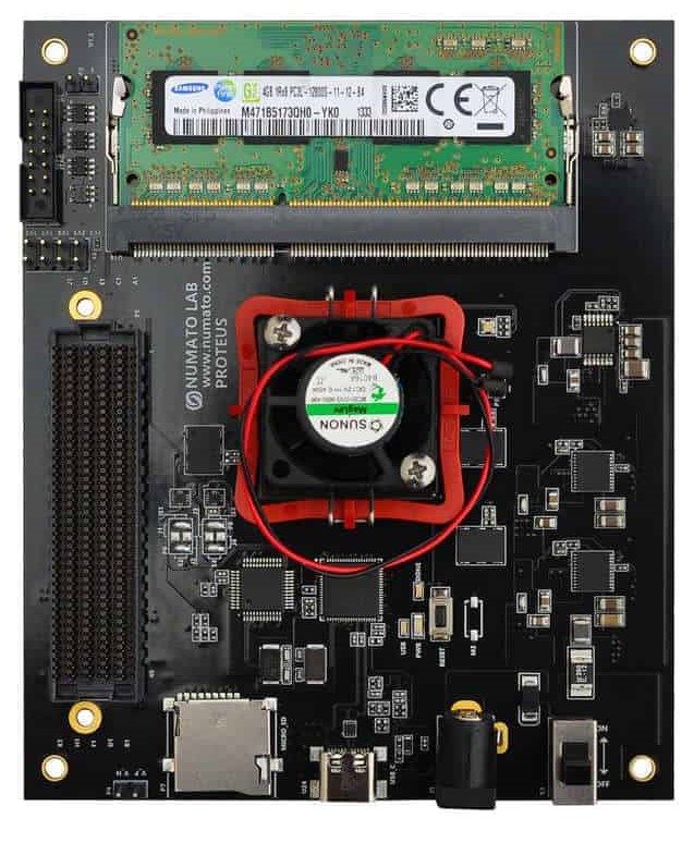 Proteus is an easy to use FPGA Development board featuring the Xilinx Kintex-7 FPGA with 4GB DDR3L SDRAM. This board contains the Xilinx XC7K160T– FBG676 FPGA (other FPGA configurations are available at request). The high-speed USB 3.1 interface (USB-C connector) provides a fast and easy configuration download to the onboard SPI flash.