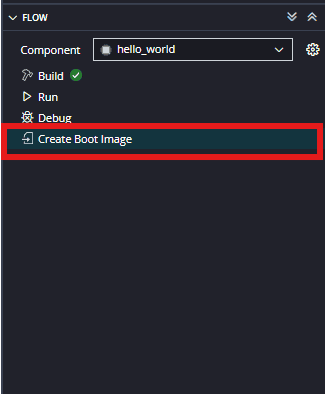 Step 6: Select the ‘helloWorld’ in the Project Explorer, After selecting the hello world select “Create Boot image” in the Flow navigator.