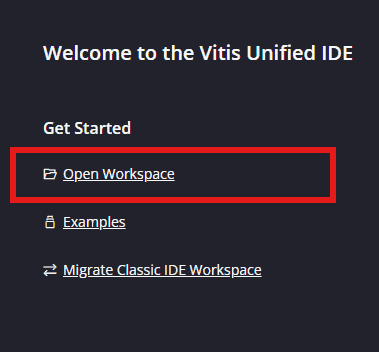 After Vitis windows opens, click on “Open Workspace” and select necessary folder to keep the Vitis files.