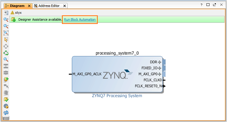 When Block Automation is executed, Vivado will use the settings in the Board Support files for Styx provided by Numato Lab to configure the FCLK_CLK0 clock for 100MHz frequency. We can now use this clock for our RTL designs.