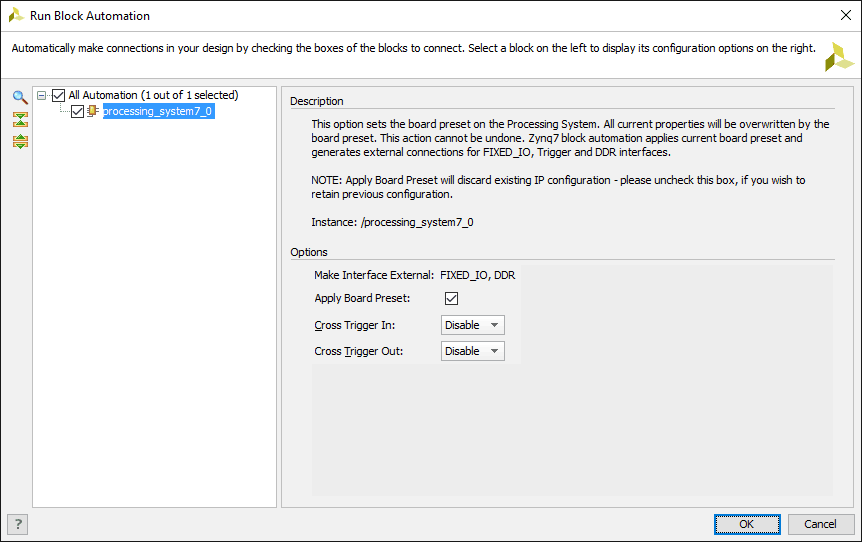 In the “Run Block Automation” window, leave the default options as in image below and click OK.