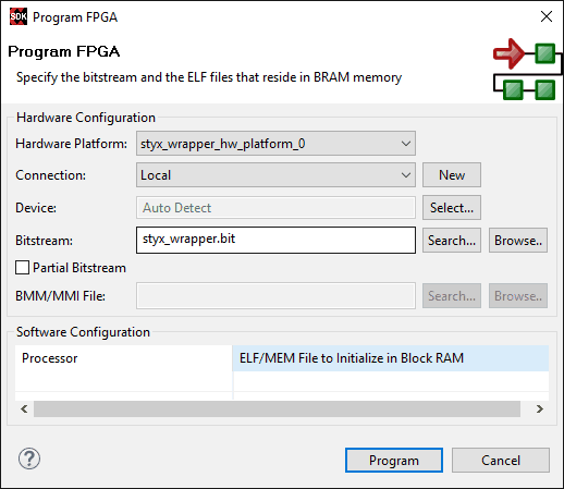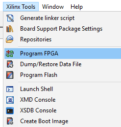 Now we need to program the bitstream first. Then we will initialize the Zynq SoC. Go to Xilinx Tools -> Program FPGA and click “Program” in the Program FPGA window.