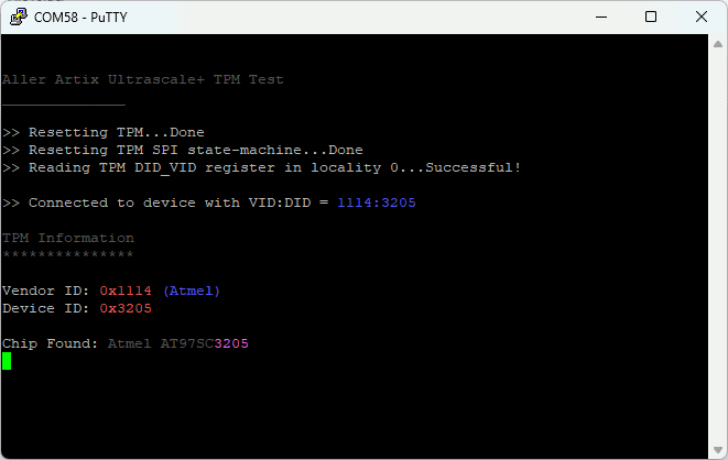 A Trusted Platform Module (TPM) is a dedicated microcontroller designed to secure hardware through integrated cryptographic keys. It plays a crucial role in establishing a hardware-based root of trust, helping ensure system integrity, data protection, and secure authentication. On the Aller AU-Plus FPGA module, the TPM IC enables robust security features such as secure boot, key storage, device identity, and data encryption, making it ideal for applications that demand high levels of trust and reliability. Whether you are working on embedded security, firmware protection, or secure communications, understanding and using the TPM is a foundational step toward building secure embedded systems.