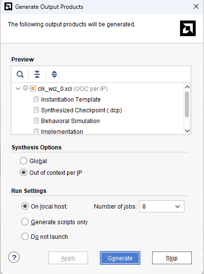 After generating the Output Product, copy paste the given code into the newly created Design Source.