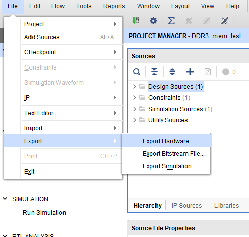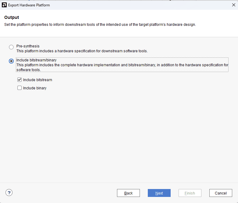 After generating the bitstream successfully, select Export -> Export Hardware from the File menu. Click Next.