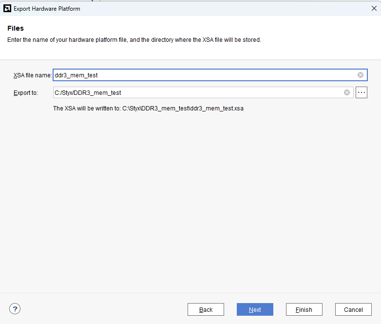 Provide the XSA file name and save it at a suitable location. Click Next and click Finish in the next dialog box.