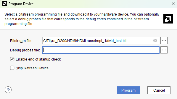 To program the TityraCore D200 with the generated bitstream, follow the steps mentioned below: