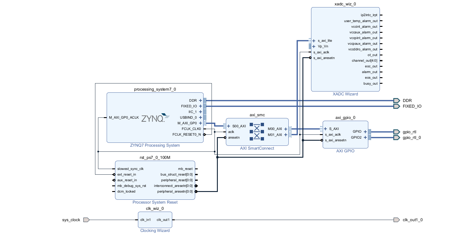 - Function: The XADC (Xilinx Analog-to-Digital Converter) is a built-in sensor that monitors the health of the Zynq chip itself.