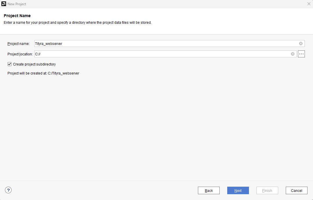 Type in a project name and save it at a convenient location. For this example âEthernet_echoâ is used as project name, but feel free to use any name. Select the check box below to keep all project files in a single folder. The image below shows the settings for the example project. Click âNextâ to continue.