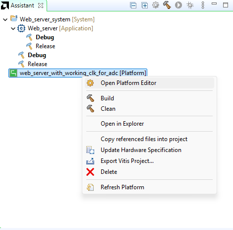 In the Assistant window, right-click on the platform and select âOpen Platform Editorâ to modify its settings.