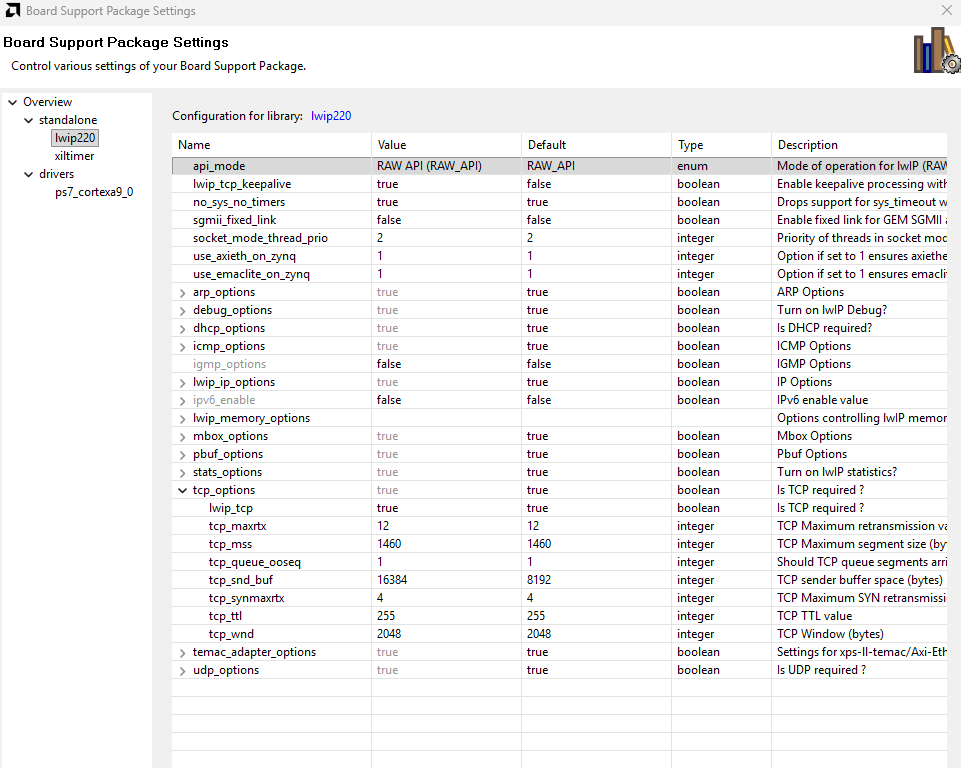 Select the lwip220 and xiltimer library and click ok to apply the changes, then the lwip and xiltimer library will be added to the platform project.
