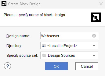 Under Flow Navigator, select âCreate Block Designâ in IP Integrator. Give an appropriate name to design. We will call it âWebserverâ for example.