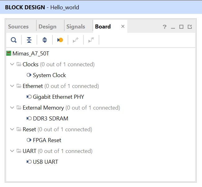 Click the Board tab. The default peripherals available for the Mimas A7 board will be displayed.